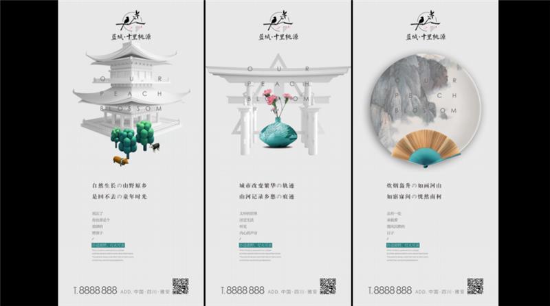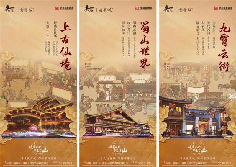 以大象形象IP連接峨眉金頂圖騰、區(qū)域生態(tài)性與印象品牌,提升品牌知名度。同時(shí),提出“印象派都是實(shí)力派”通過印象派藝術(shù)對味峨眉生態(tài)大境,最后落位區(qū)域5個(gè)項(xiàng)目,提升整體營銷均好性。